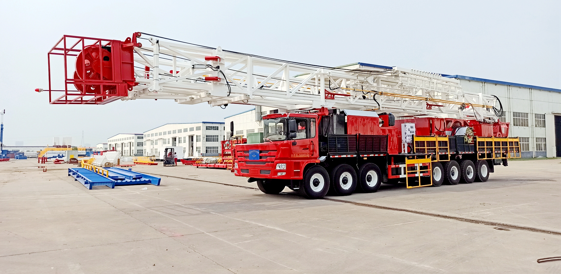 車(chē)裝鉆機(jī)是將動(dòng)力系統(tǒng)、絞車(chē)、井架、游車(chē)系統(tǒng)及傳動(dòng)系統(tǒng)等部件全部裝載于自走式底盤(pán)上。具有作業(yè)負(fù)荷大、性能可靠、越野能力強(qiáng)、移運(yùn)方便,作業(yè)和搬遷費(fèi)用低等特點(diǎn)。